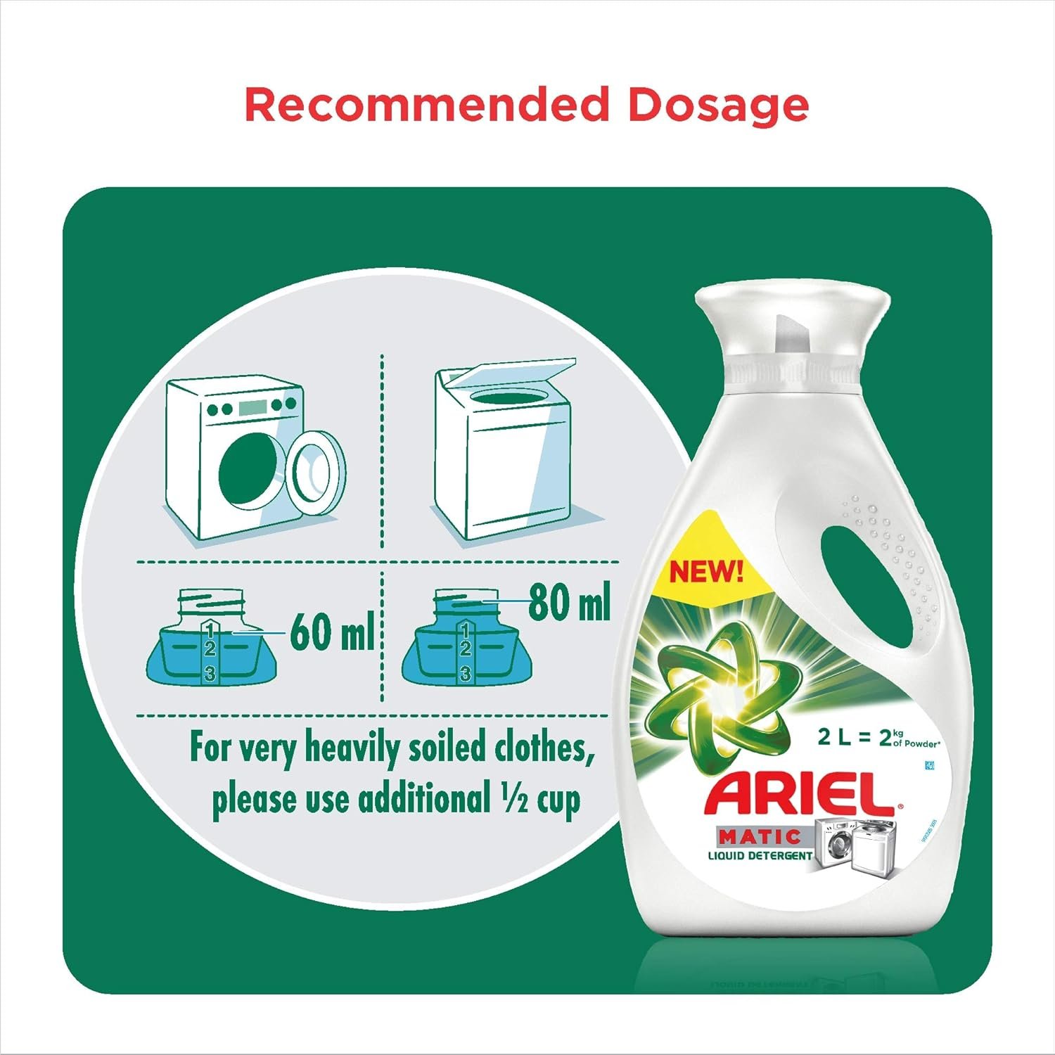 The Ariel Matic Front Load Liquid comes in a generous 2-liter pack, making it the perfect solution for multiple washes without the need for frequent replacement. Its precision-engineered formula means you use just the right amount for each wash, ensuring the detergent lasts longer and delivers consistent results every time. Experience the trusted cleaning performance you deserve with Ariel Matic.