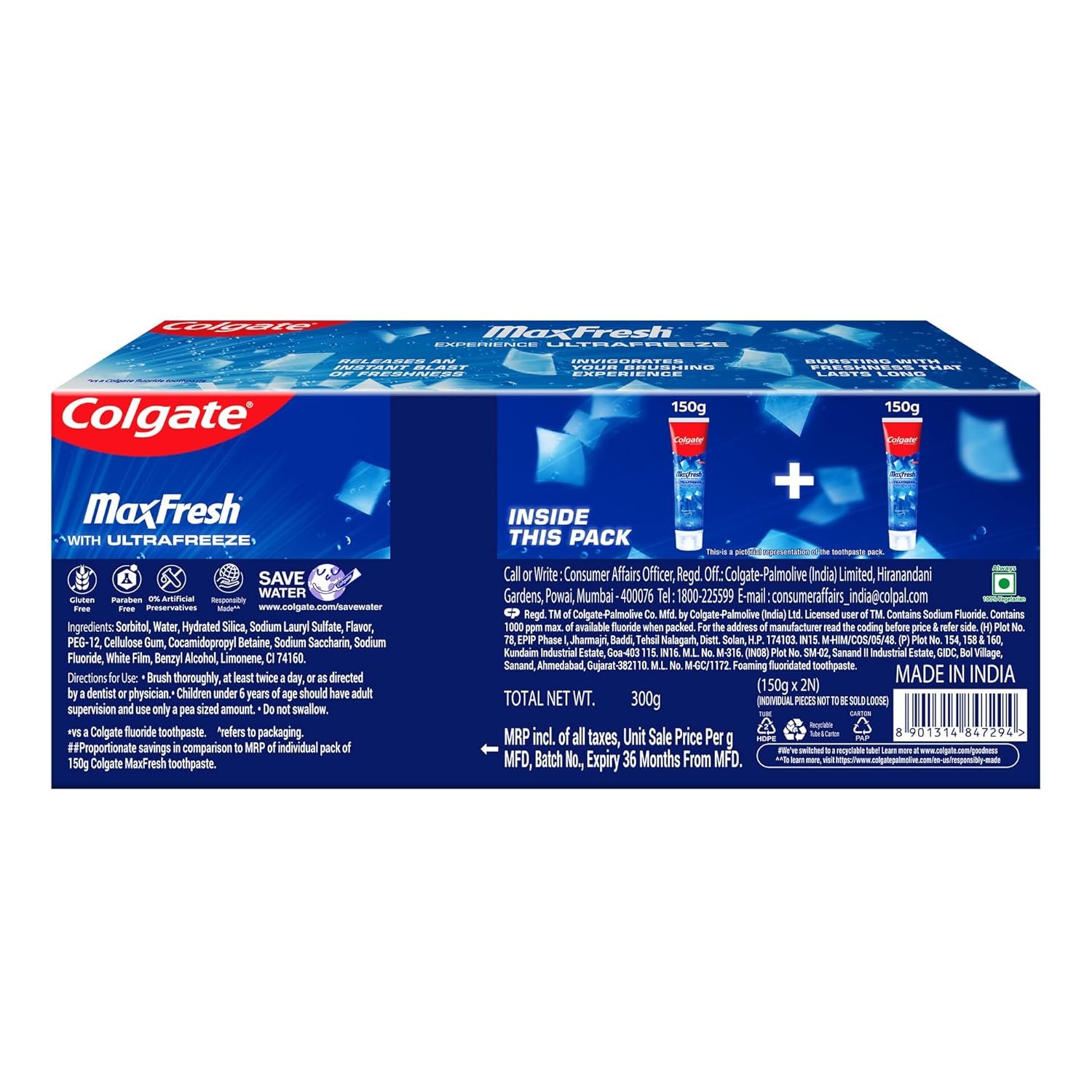 Colgate MaxFresh Toothpaste,Blue, 300g Saver Pack (150g x 2)