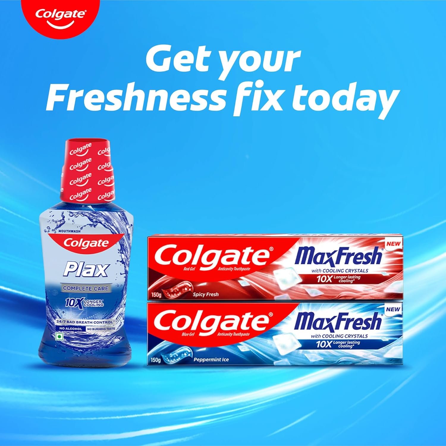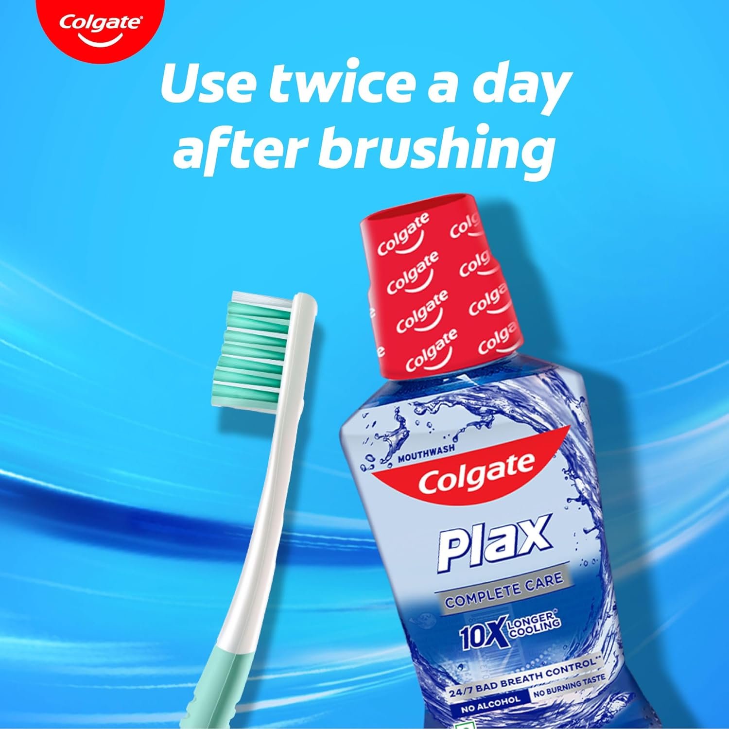 Colgate Plax Complete Care mouthwash removes over 99% of germs that cause bad breath and cavities, giving you a fresher and cleaner mouth than brushing alone. It gives you complete protection with 10 benefits in 1 mouthwash, including strengthening enemal, plaque and cavity prevention, and gum protection.This mouthwash contains no alcohol (non-alcoholic) hence does not cause any burning sensation when you use it. Yet it removes 99% germs instantly. You will experience an instant blast of freshness and 10X longer cooling sensation compared to brushing alone. This mouthwash gives you 24/7 control over bad breath with regular use. How to use: Fill the cap to its line (20ml). Rinse mouth with mouth wash thoroughly for 30 seconds, gargle and expel. Do not swallow. This mouth wash can be used by both men and women When to use: After brushing, An effective mouth freshner for your post meal needs. Colgate is India’s most trusted oral care brand. As a trusted partner, we are committed to doing business with integrity and respect for all people and the world around you. Colgate offers quality oral care products, including toothpastes and toothbrushes,as well as expert dental health information.