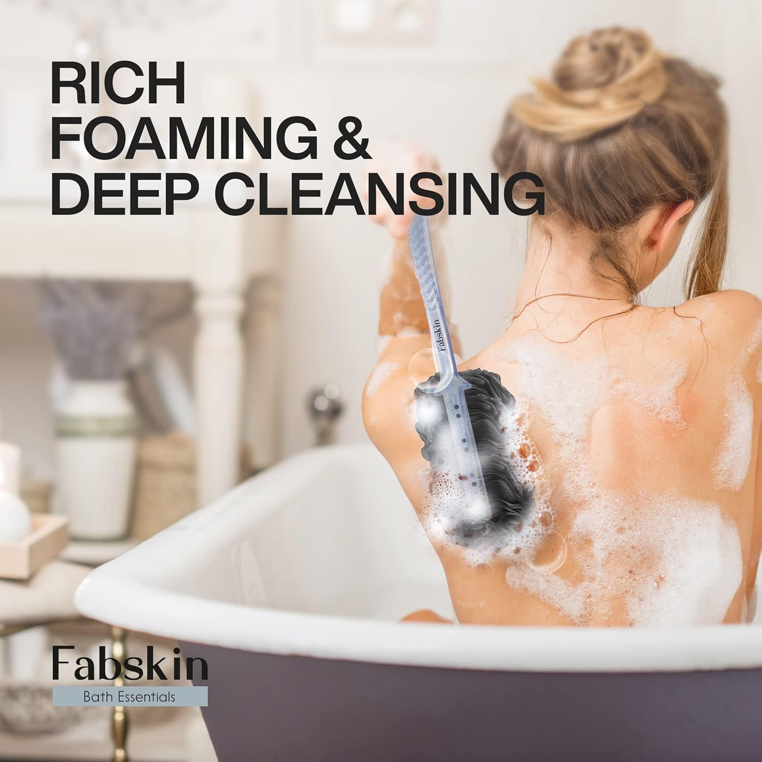 Fabskin Luxury Bathing Loofah Fabskin Luxury Bathing Loofah is composed of fibers that are very helpful to exfoliate your skin. It is also beneficial for you to eliminate dead skin cells that will automatically give you smooth, youthful as well as glowing skin. So bring back the joy of bathing. How to Use – Take a little bit of shower gel or soap on wet Loofah to produce a lot of foamy lather. Gently scrub all over the body & Rinse off. Hang on the wall to air dry and keep your Loofah safe and hygienic.