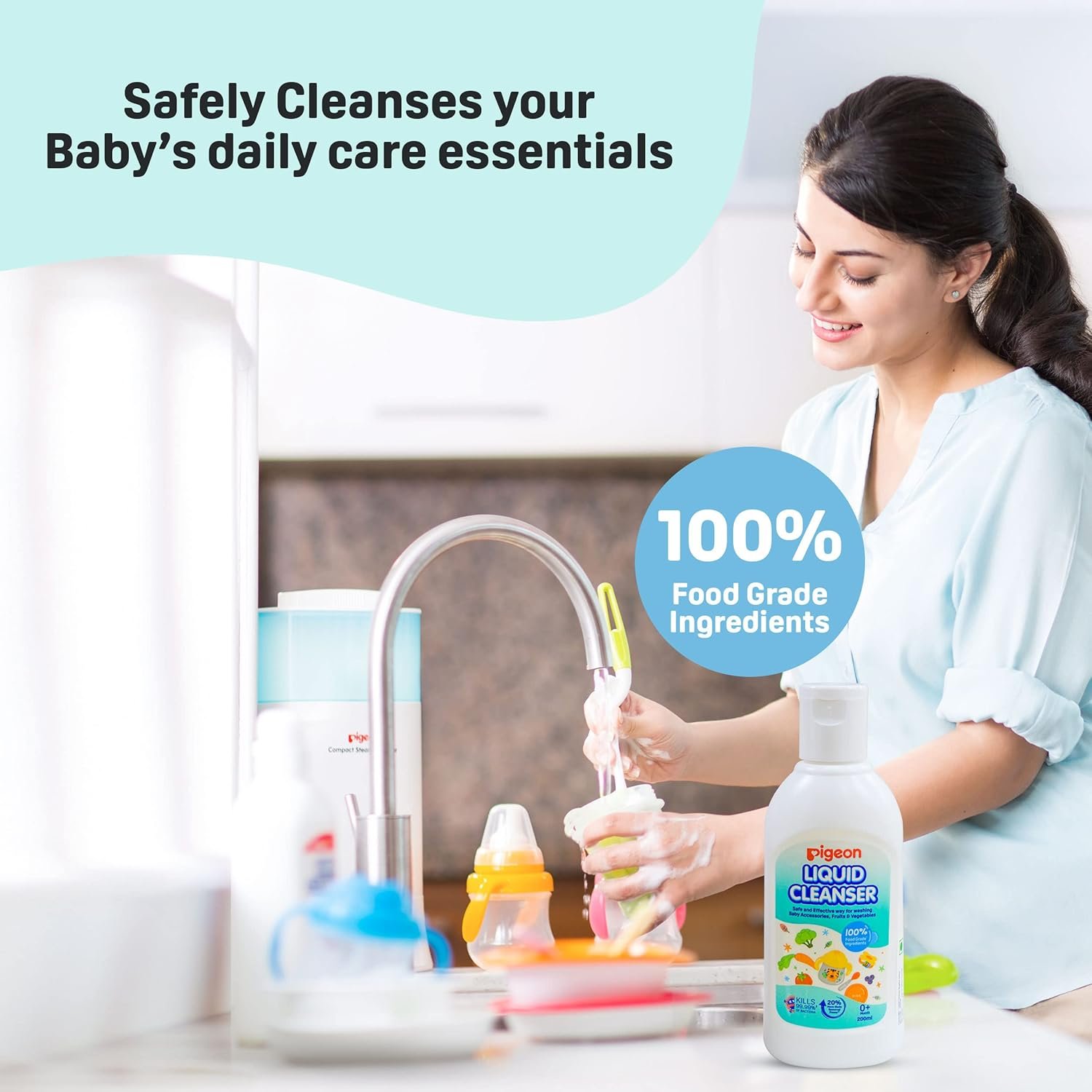 The Pigeon liquid cleanser is an excellent product that helps to clean all types of nursing equipment as well as toys and other stuff used by the baby. Prepared using a special formula, the liquid cleanser by Pigeon is much stronger than the routine kitchen cleaning formulations. Mothers can safely clean all types of baby accessories like bottles, pacifier, toys, etc. using this cleanser. It removes the dirt as well as bacteria making the product safe for being used by the baby on a regular basis. Also, the naturally bio degradable formulation of the Pigeon liquid cleanser effectively removes pesticides residue from fruits and vegetables.