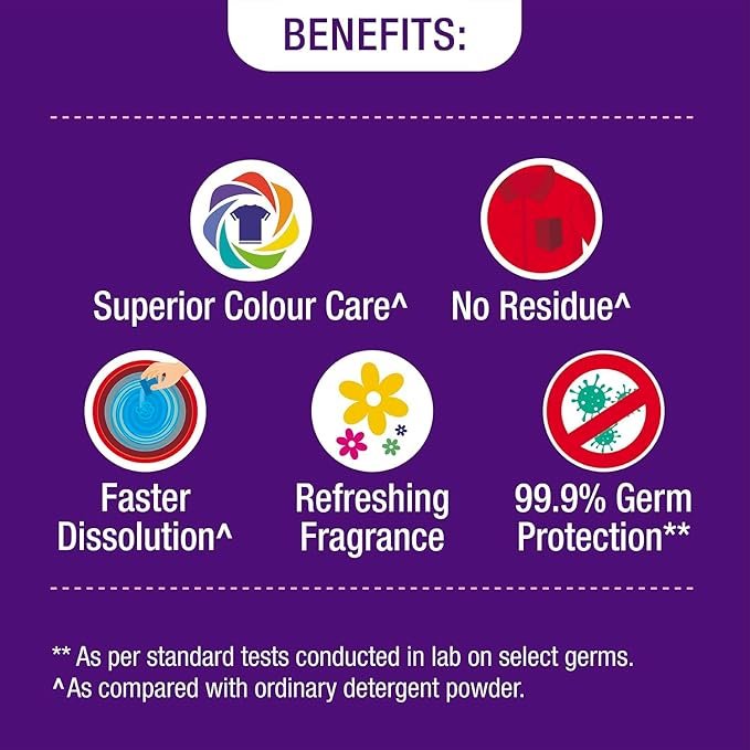 - Superior colour care: Its unique formula ensures clothes retain their colour & newness wash after wash.