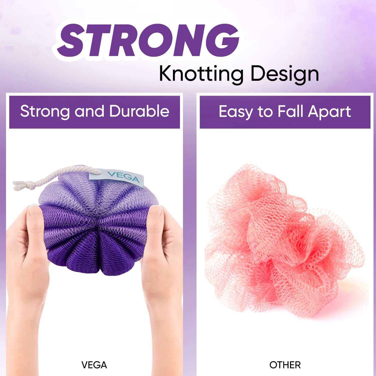 • DURABLE KNOTTING DESIGN: The quality mesh material of the bathing scrub prevents wear and tear, ensuring long-lasting use.